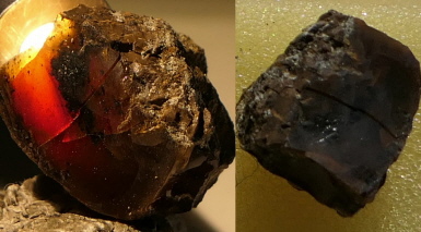 Der Burmesische Bernstein ist über doppelt so alt wie der Baltische Bernstein, fast 100 Millionen Jahre. Die Minen liegen hoch im Norden von Myanmar, seit vielen Jahren für Touristen nicht mehr zugänglich. Große Burmabernsteine sind selten, wie dieser 880 g schwere massive Bernstein.