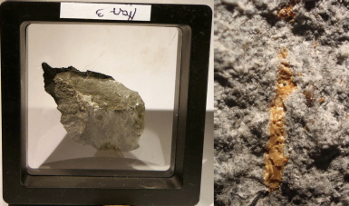 In einem Steinbruch im Harz fand ich eine Gesteinsschicht aus dem Jura (eindeutig zeitlich bestimmt: Oberer Malm-Kimmeridge = 155 Millionen Jahre), die kleine Bernsteineinschlüsse im Millimeterbereich enthält - mit bloßem Auge gerade eben sichtbar.
