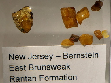 Mehrere kleine Bernsteine bis 12 mm aus der Lagerstätte East Brunsweak bei New Jersey. Aus der Raritan Formation, Turonium, ca. 90 Miliionen Jahre alt.