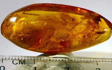 Der Bernstein ist mit Lack gefestigt, da er brüchig ist.