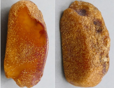 Diesen Bernsteinfund habe ich 1994 in der legendären Bitterfelder Braunkohlegrube gemacht. Der Bernstein ist von fester Qualität, milchig-gelbbraun, wiegt 6g und ist 34mm groß.