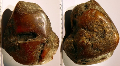Diesen Bernsteinfund habe ich 1994 in der legendären Bitterfelder Braunkohlegrube gemacht. Bernsteinfunde über 20 g gehörten zu den Seltenheiten. Hier ein 21g schwerer und 62mm großer Bitterfelder.