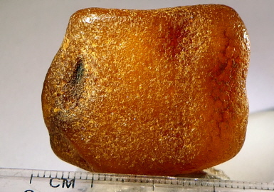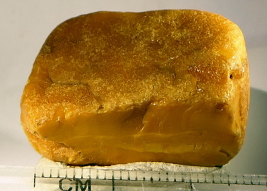 Diesen Bernsteinfund habe ich 1994 in der legendären Bitterfelder Braunkohlegrube gemacht. Es ist ein schöner fester milchig-gelber Bernstein, wiegt 3g und ist 22mm groß.