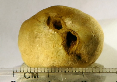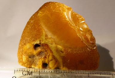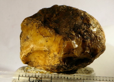 Diesen Bernsteinfund habe ich 1994 in der legendären Bitterfelder Braunkohlegrube gemacht. Es ist ein typischer Schlauben-Bernstein, wiegt 4,5g und ist 47mm groß.