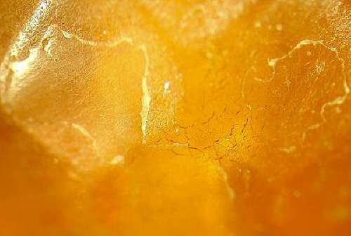 - Durch Altern bekommt der Bernstein feinste Oberflächenrisse, die man mit bloßem Auge nicht sieht, die ihn dann matt erscheinen lassen: