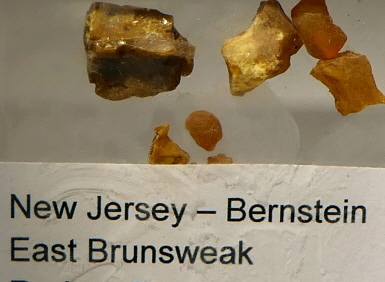 Mehrere kleine Bernsteine bis 12 mm aus der Lagerstätte East Brunsweak bei New Jersey. Aus der Raritan Formation, Turonium, ca. 90 Miliionen Jahre alt.