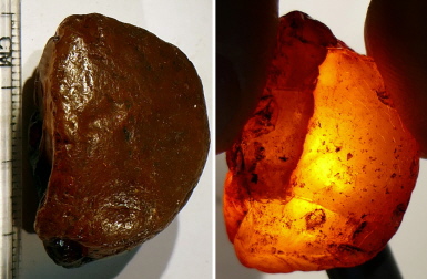 Diesen Bernsteinfund habe ich 1994 in der legendären Bitterfelder Braunkohlegrube gemacht. Der Bernstein ist von fester Qualität, milchig-gelbbraun, wiegt 6g und ist 34mm groß.