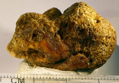 Diesen Bernsteinfund habe ich 1994 in der legendären Bitterfelder Braunkohlegrube gemacht. Der Bernstein ist milchig-gelbbraun mit weißlichen Schlieren, wiegt 6g und ist 36mm groß.