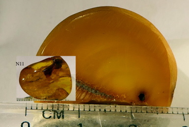 Als Geschenk lege ich einen 25mm klaren Bitterfelder Bernstein bei (N11).
