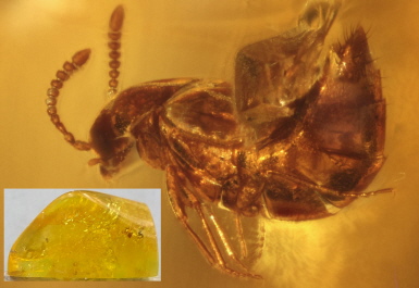 In einem ehemals 40 mm klar-honiggelben Baltischen Naturbernstein liegt dieser perfekt erhaltene Kurzflüglerkäfer STAPHYLINIDAE, aus der Unterfamilie PAEDERINAE. Ich habe den Bernstein zersägt, um den Käfer von allen Seiten sehen und bestimmen zu können. Alle Bernsteinstücke werden mitgeliefert.